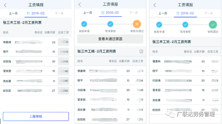 劳务管理实际场景中,班组长需要每月上报纸质工资表给项目部审核,如有问题再进行修改、重新上报,所有流程走线下、纸质化流程,耗时久、效率低。务工宝APP提供线上工资上报的功能,班组长可线上完成整个工资填报的流程。