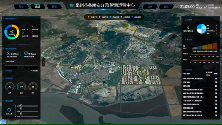 项目按照“统筹规划、分步实施,政府引导、市场驱动,创新引领、融合发展”的原则,以创新园区管理、服务产业发展为目标,利用新型智慧园区发展理念,以园区开发运营全生命周期的“规建管服”一体化业务为主线,利用BIM+3DGIS和云计算、大数据、物联网、移动互联网、人工智能等信息技术,实现物理园区全过程、全要素、全方位的数字化、在线化、智能化,构建起物理维度上的实体园区和信息维度上的数字孪生园区,形成线上线下协同运作、互联互通、全面感知、智能处理、虚实融合的园区发展新形态,实现园区规划一张图、建设监管一张网、园区治理一盘棋、招商服务一站式