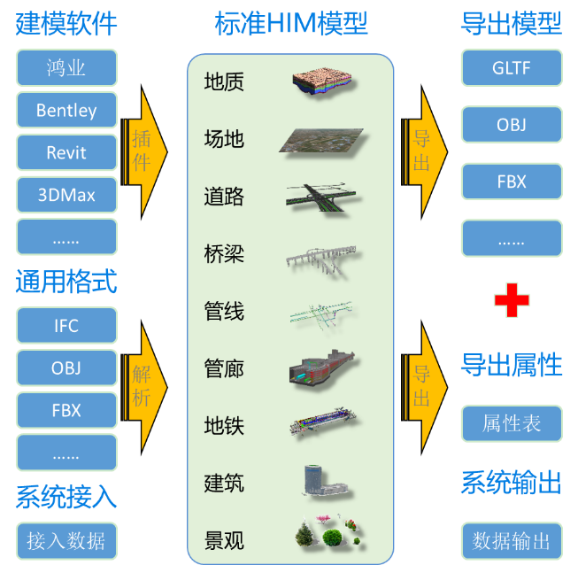 数据打通与设计软件解绑,通过建立“轻量化、标准化、可扩展”的HIM模型格式,实现不同专业、不同软件的设计数据打通与共享。 |
