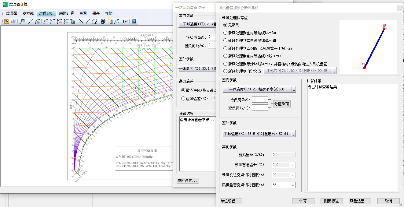 焓湿图集成焓湿图绘制及空气处理过程计算;焓湿图绘制与负荷计算数据传递无缝结合。 |