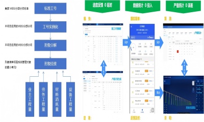 以WBS标准为桥樑,实现商务与生产的一体化,解决商务数据与生产数据两层皮的问题。系统固化企业WBS标准,项目为管理高效可将WBS标准组合为易于管理的形象进度,项目形象进度与业主工程量清单、分包工程量清单、材料消耗量、设备工程量基于AI技术自动匹配,完成WBS、形象进度、工程量清单、资源消耗量的业务逻辑、数据关系对应。以WBS为基础,完成进度计划完编制,系统可按进度计划中的WBS按对应关系自动生成与进度计划匹配的产值计划。进度计划按天分解发送到不同施工员的手机APP中,施工员按计划组织生产,每完成进度计划中的一个工作项,施工员在APP中对该工作项打勾,数据自动汇总到进度计划或所属的形象进度中,更新进度的完成信息,项目实时掌握项目进度的计划与完成偏差。汇总的进度计划或形象进度数据实时同步给商务部门,系统自动生成匹配的产值统计,支撑对业主、分包队伍进行工程量结算、资源消耗量的核算等工作,使商务数据与生数据一致,降低项目风险。